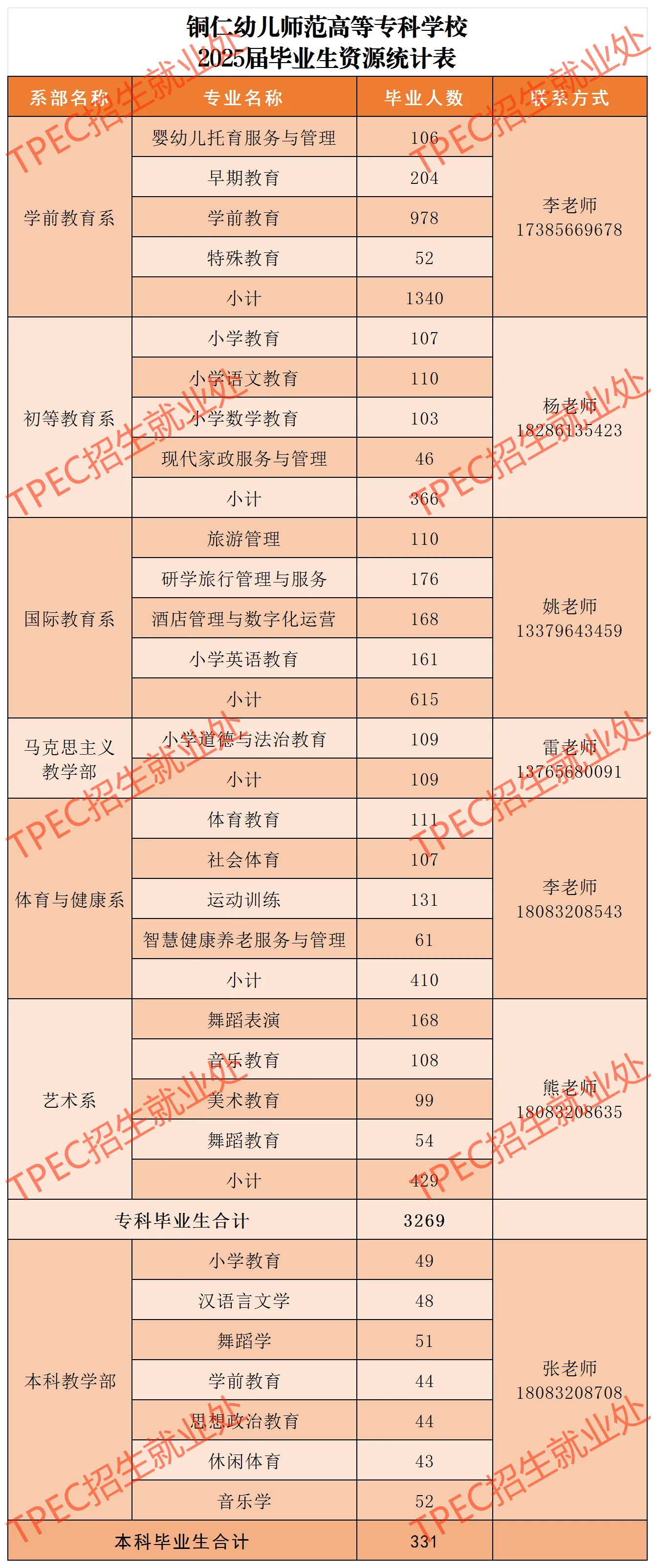 学校占地1000亩,建筑面积18万平方米,有全日制学生1万余人。现有教职工543人,其中,博士47人(含在读),硕士255人,副高级以上职称152人,“双师”素质教师343人。有全国优秀教师、全国群众体育先进个人、教育部职业院校教指委委员、省级职教名师等20余人。学校内设16个党政教辅机构、8个二级系部、2所附属幼儿园,直属管理铜仁市旅游学校。开设有学前教育、体育教育等24个专业,面向全国18个省(市、区)招生。有8个专业与凯里学院、铜仁学院开展本科联合办学,有本科生600余人。